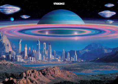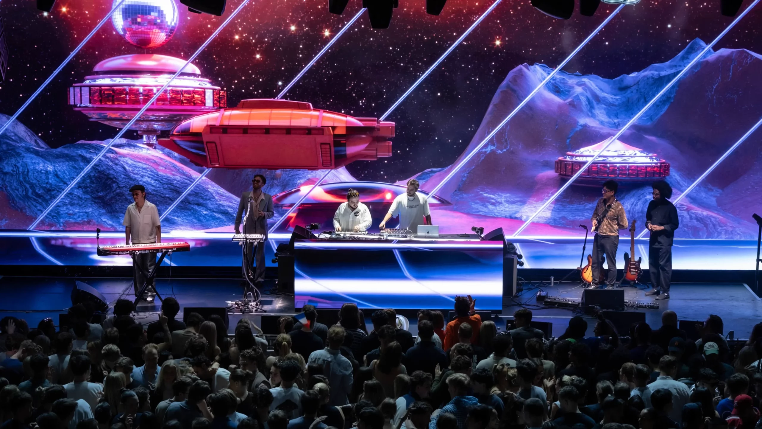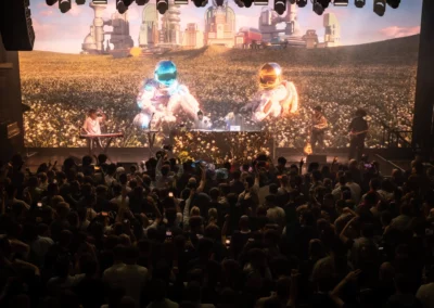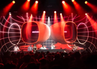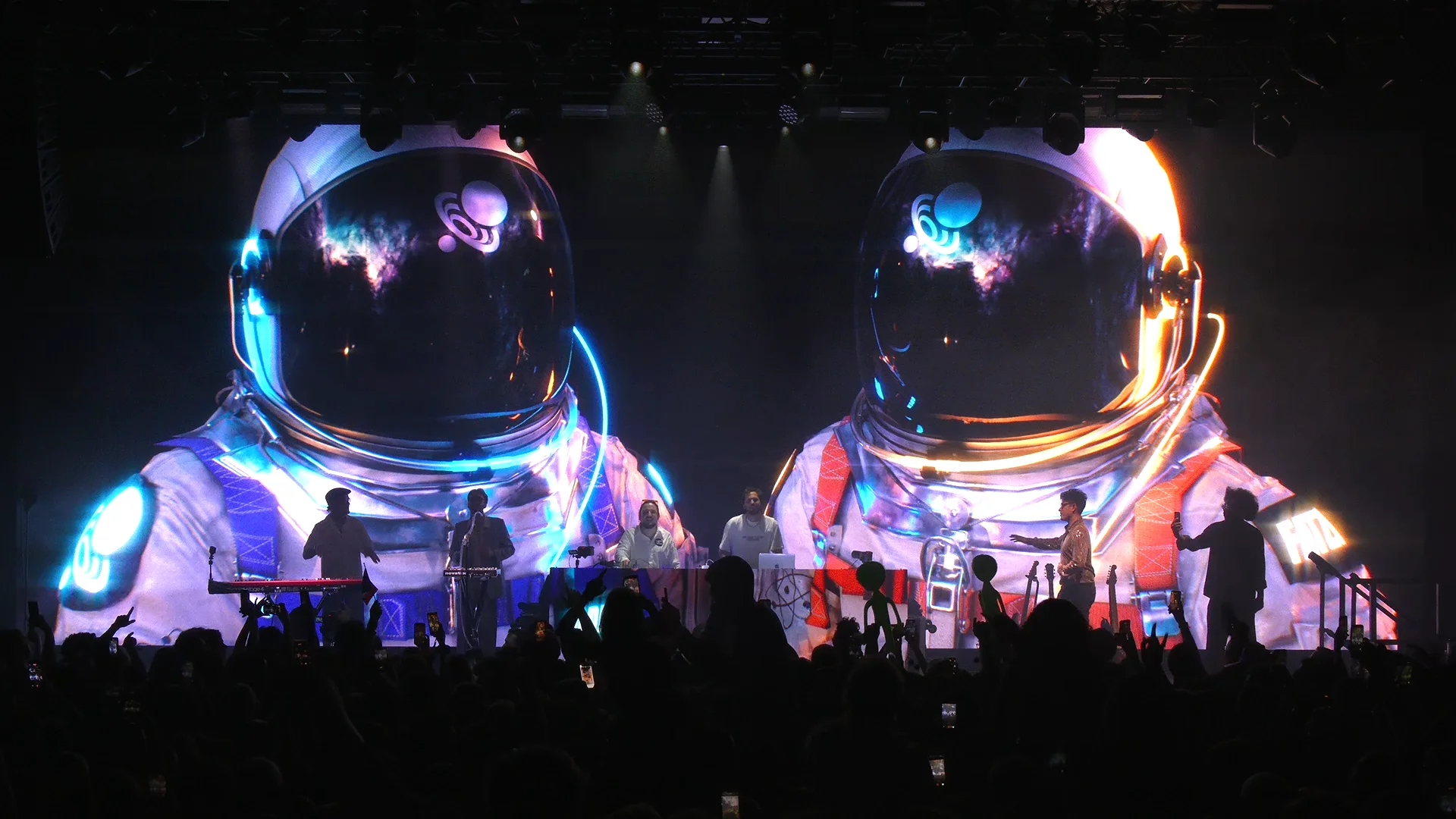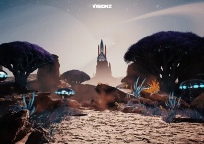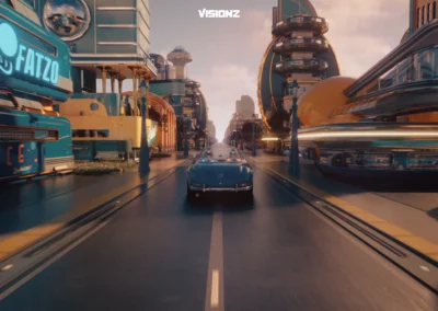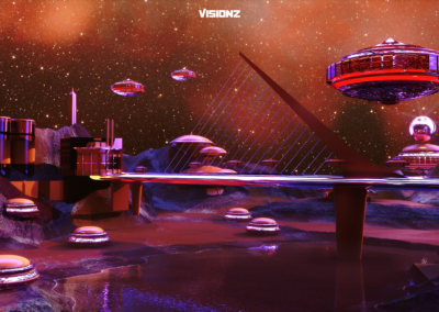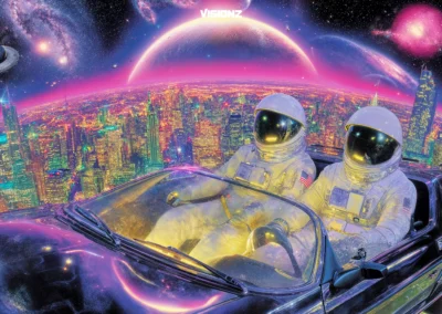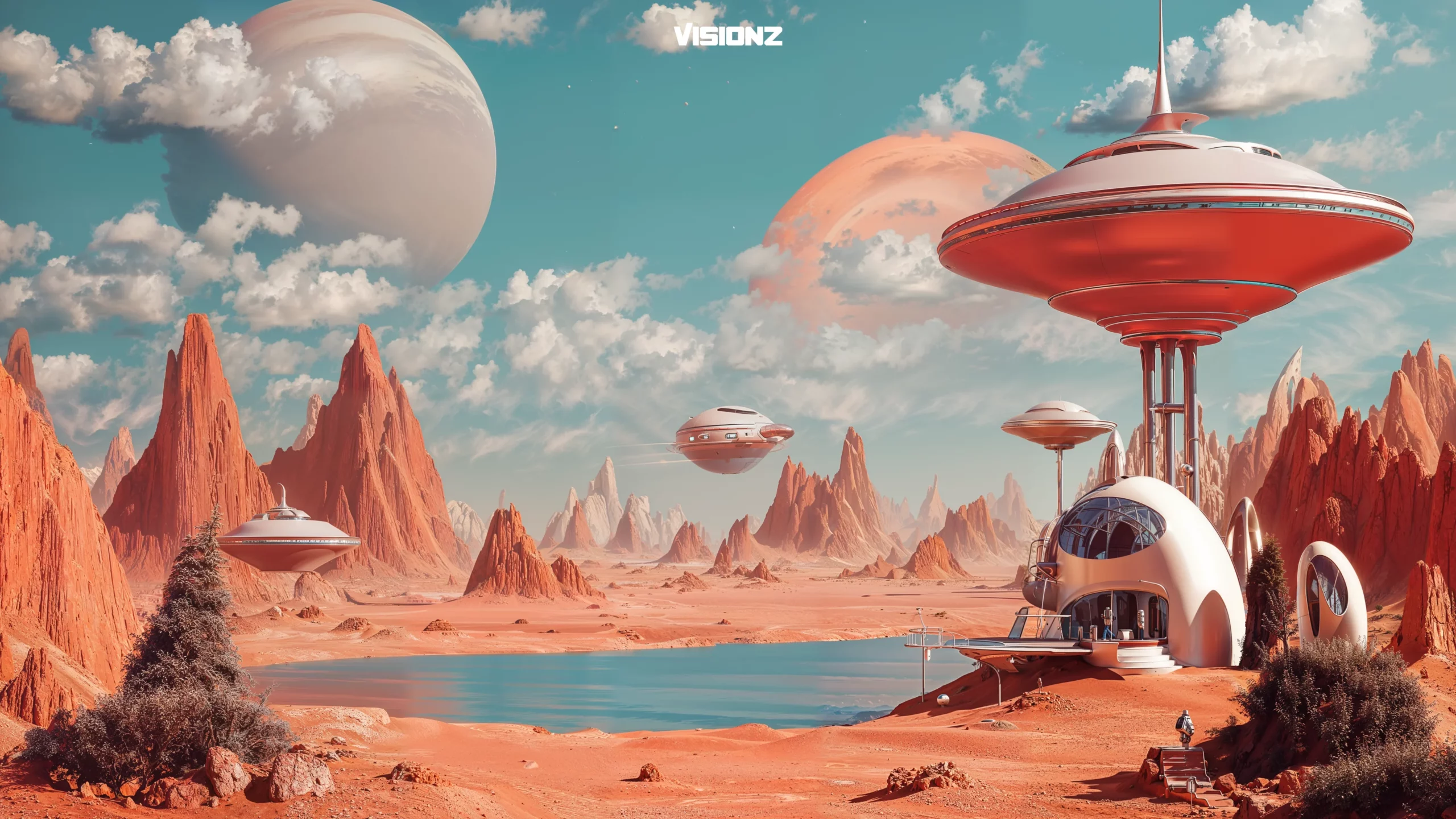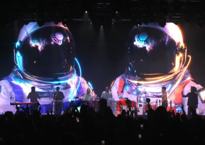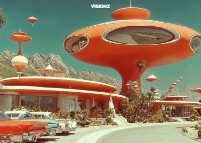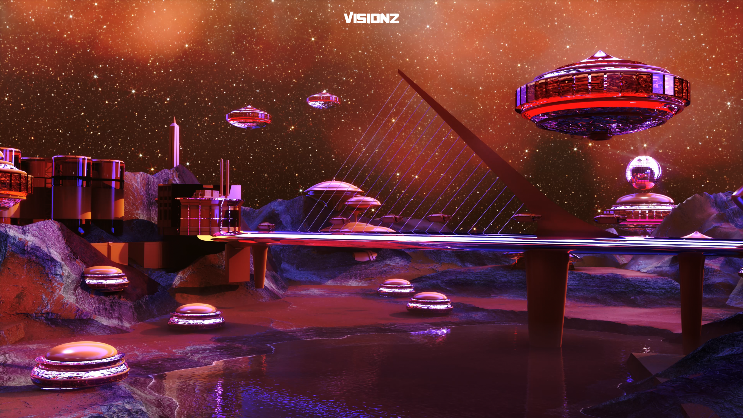 We developed the idea of taking the audience on a journey alongside them — starting from a retro-futuristic Earth, traveling through space, and exploring different planets across time and dimensions. The artistic direction consistently blends futuristic elements with a strong retro aesthetic inspired by the 60s to 80s.